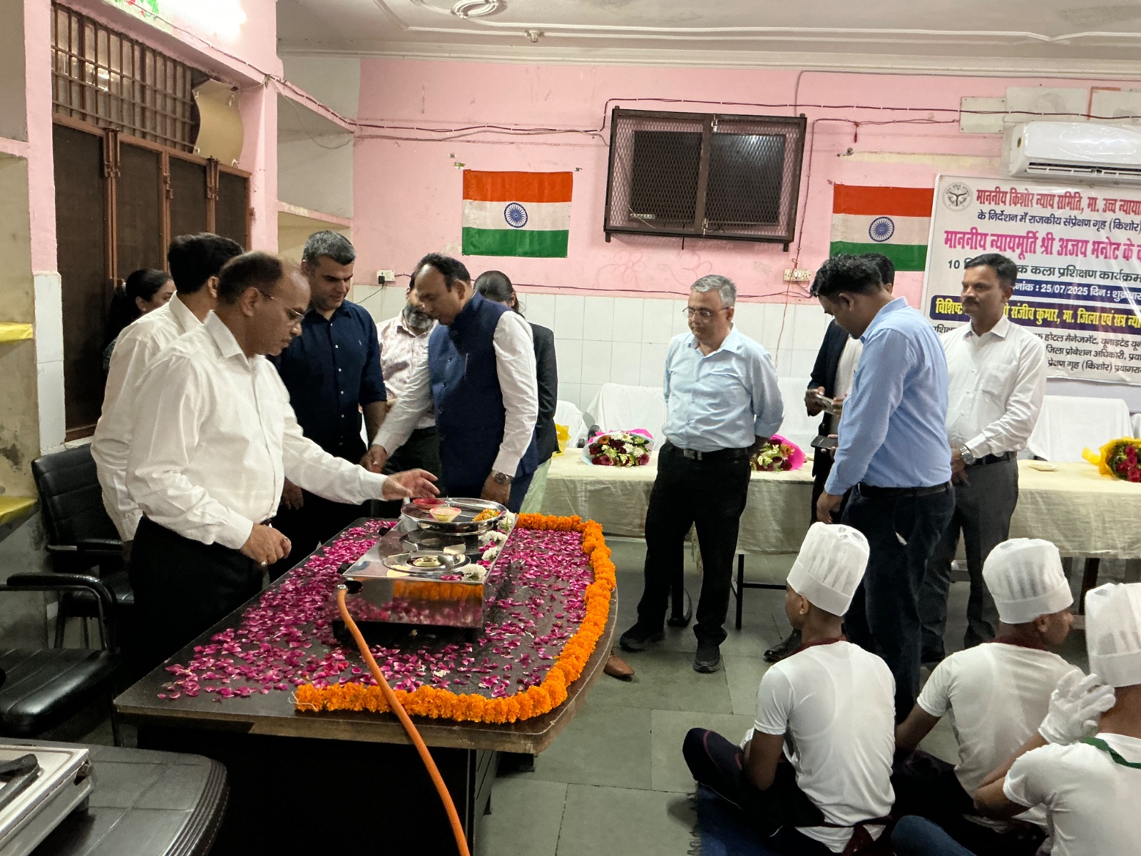 25 जुलाई को माननीय जनपद न्यायाधीश/अध्यक्ष , जिला विधिक सेवा प्राधिकरण प्रयागराज श्री संजीव कुमार द्वारा राजकीय बाल गृह किशोर में 10 दिवसीय पाक कला प्रशिक्षण का शुभारंभ रसोई घर में स्वास्तिक बनाकर किया गया। यह 10 दिवसीय पाक कला प्रशिक्षण यूनाइटेड यूनिवर्सिटी झलवा प्रयागराज के आतिथ्य संकाय द्वारा दिया जाएगा । प्रशिक्षण के अंत में लिखित व प्रायोगिक परीक्षा होगी और प्रथम, द्वितीय व तृतीय श्रेणी को पुरस्कृत किया जाएगा । माननीय जनपद न्यायाधीश अध्यक्ष जिला विधिक सेवा प्राधिकरण प्रयागराज द्वारा राजकीय संप्रेषण गृह किशोर में आवासित बालकों को पाक कला के गुण से होने वाले लाभ से अवगत कराते हुए उन्हें उज्जवल भविष्य की शुभकामनाएं प्रदान की गई।
