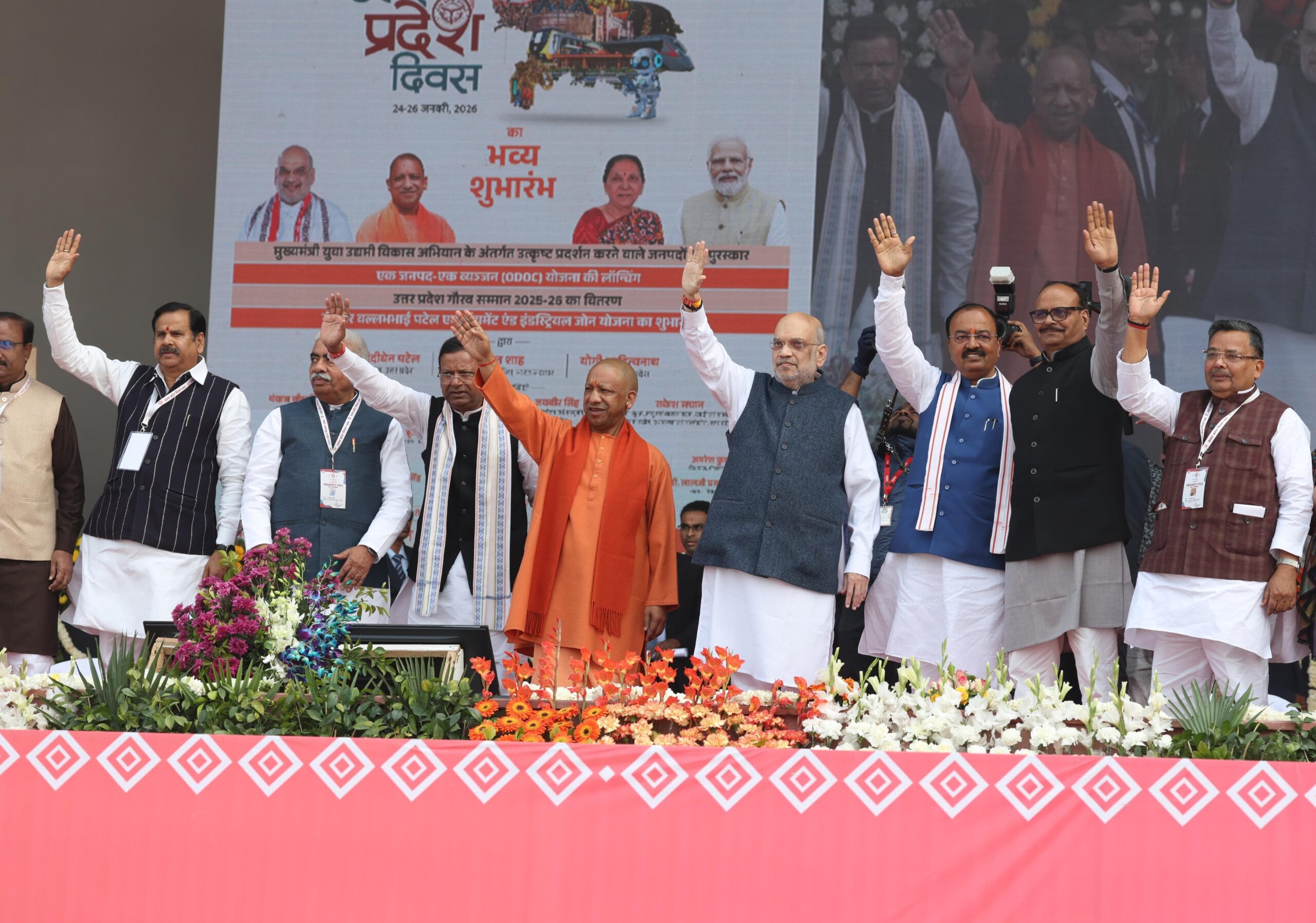उत्तर प्रदेश के स्थापना दिवस के अवसर पर राजधानी लखनऊ स्थित ‘राष्ट्र प्रेरणा स्थल’ में आयोजित भव्य समारोह में मुख्यमंत्री योगी आदित्यनाथ ने केंद्रीय गृह एवं सहकारिता मंत्री अमित शाह के साथ सहभाग किया। इस अवसर पर प्रदेश की सांस्कृतिक विरासत, औद्योगिक विकास और उद्यमिता को नई दिशा देने वाली कई महत्वपूर्ण योजनाओं का शुभारंभ किया गया।