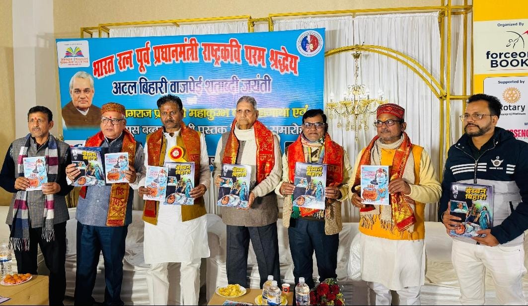 भारत रत्न, राष्ट्रकवि एवं पूर्व प्रधानमंत्री अटल बिहारी वाजपेयी जी की जन्म शताब्दी के अवसर पर कलर्स ऑफ कल्चरल एंड आर्ट फाउंडेशन, प्रयागराज द्वारा कटरा स्थित पाम्स रिसोर्ट–रॉयल गार्डन के सभागार में प्रयागराज प्रदर्शनी—महाकुंभ की महागाथा एवं जासूस बब्बन बिहारी पुस्तकों का विमोचन समारोह आयोजित किया गया। इस अवसर पर अटल बिहारी वाजपेयी जी को श्रद्धांजलि अर्पित की गई।