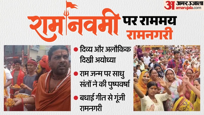 उधर, रामलला के जन्म के शुभ अवसर पर भए प्रकट कृपाला दीनदयाला की स्तुति से पूरा वातावरण भक्तिमय हो गया। कनक भवन और हनुमानगढ़ी में श्रद्धालु भक्ति गीतों पर झूमते और नाचते नजर आए।