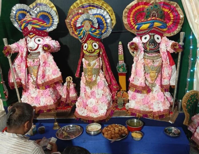श्री जगन्नाथ जी महोत्सव समिति ट्रस्ट के द्वारा आयोजित रथ यात्रा महोत्सव के अंतर्गत विश्राम यात्रा के उपरांत विश्राम की अवस्था में ज्वर पीड़ा से पीड़ित भगवान जगन्नाथ जी को ट्रस्ट के मंत्री गगन दास गुप्ता ने सुबह खिचड़ी का एवं शाम को औषधि युक्त काढ़े प्रसाद का भोग लगाया ।