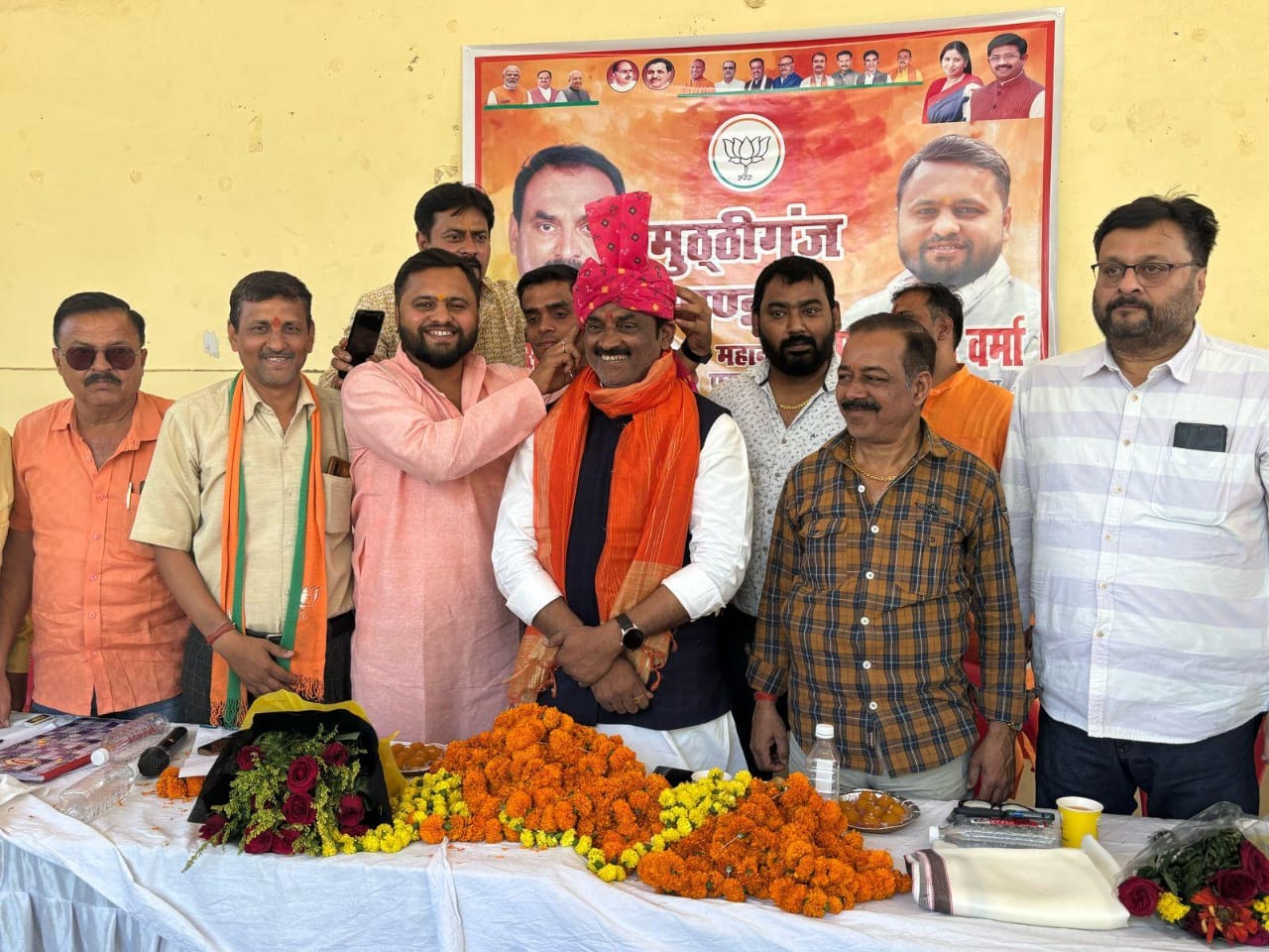 इस अवसर मंडल अध्यक्ष परमानंद वर्मा ने महानगर अध्यक्ष संजय गुप्ता को साफा पहनाकर सम्मानित किया