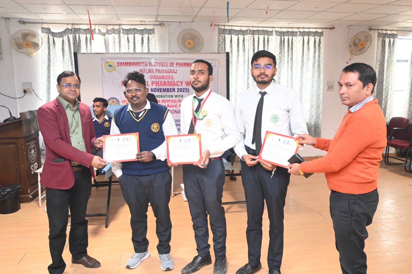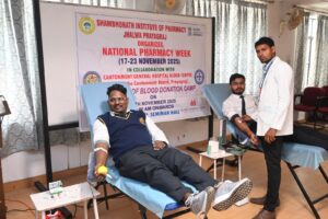 प्रयागराज। जनपद के उत्कृष्ट फार्मेसी संस्थान, शम्भूनाथ इंस्टिट्यूट ऑफ़ फार्मेसी मे चल रहे नेशनल फार्मेसी वीक (17 से 23 नवंबर) के अंतर्गत 19 नवंबर 2025 को रक्तदान शिविर का आयोजन किया गया जिसका मुख्य उद्देश्य जरूरतमंद लोगों की जान बचाना है, किसी दुर्घटना या सर्जरी के शिकार लोग, हृदय रोग या कैंसर से पीड़ित रोगी की जान बचाना सामिल है lशिविर का आयोजन कैंटोमेन्ट जनरल हॉस्पिटल प्रयागराज, रक्षा मंत्रालय भारत सरकार के द्वारा किया गया l शिविर मे संस्थान संचालित हो रहे विभिन्न पाठ्यक्रम जैसे •डी• फार्म•, बी•फार्म, एम•फार्म• और फार्म •डी • के विद्यार्थियों के साथ साथ संस्थान के शिक्षकों और कर्मचारियों ने भी रक्तदान किया lसंस्थान के सचिव कौशल कुमार तिवारी, प्रबंध निदेशक अभिषेक तिवारी,शम्भूनाथ इंजीनियरिंग संकाय के निदेशक (प्रो•) डॉ• आर• के• सिंह और फार्मेसी संस्थान के निदेशक प्रो•(डॉ•) अरविन्द कुमार श्रीवास्तव ने इस सफल आयोजन के लिए सभी को धन्यवाद दिया l