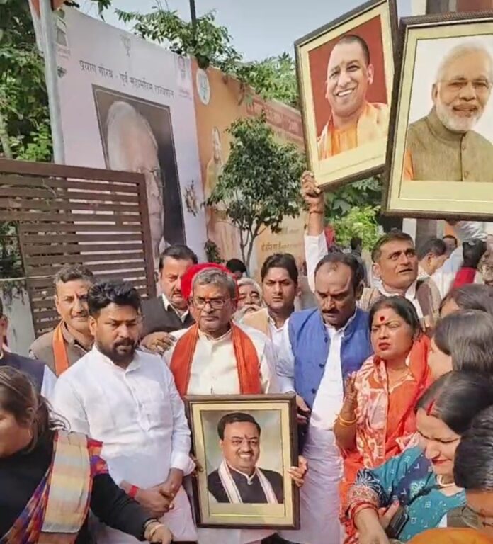 बिहार विधानसभा चुनाव में एनडीए सरकार की ऐतिहासिक और प्रचंड जीत के बाद भाजपा कार्यकर्ताओं ने सिविल लाइंस स्थित भाजपा कार्यालय में ढोल-नगाड़ों, पटाखों और मिठाइयों के साथ जोरदार उत्सव मनाया। कार्यकर्ताओं ने मोदी–योगी–केशव प्रसाद मौर्य की तस्वीरें लेकर जिंदाबाद के नारे लगाए और एक-दूसरे को बधाई दी।