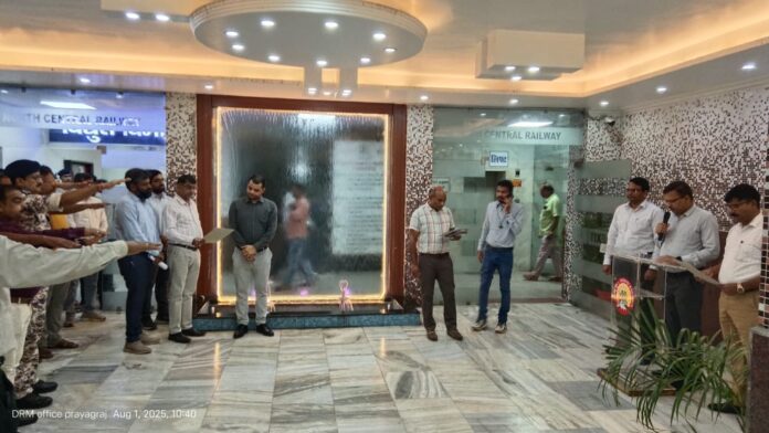 स्वतंत्रता दिवस -2025 के अवसर पर राष्ट्रव्यापी स्वच्छता अभियान के क्रम में आज प्रयागराज मण्डल के अपर मण्डल रेल प्रबंधक/सामान्य, संजय सिंह के नेतृत्व में स्वच्छता अभियान का शुभारम्भ किया गया। प्रयागराज मण्डल में यह स्वच्छता पखवाड़ा 01/08/2025 से 15/08/2025 तक मनाया जाएगा। इस शपथ कार्यक्रम में अपर मण्डल रेल प्रबंधक/इंफ्रा, नवीन प्रकाश; अपर मण्डल रेल प्रबंधक/परिचालन, मुबश्शिर वारिस एवं अन्य अधिकारी व कर्मचारी उपस्थित थे ।