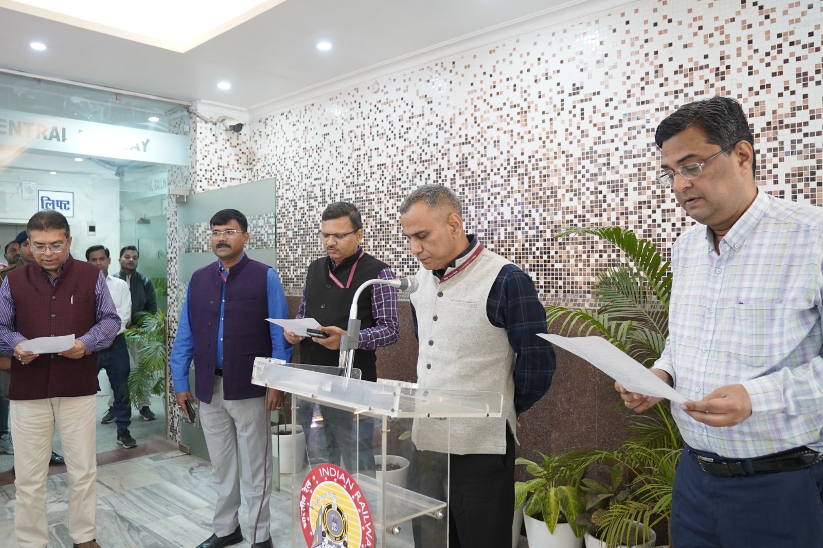 प्रयागराज मण्डल कार्यालय परिसर में मण्डल रेल प्रबंधक/प्रयागराज हिमांशु बडोनी के नेतृत्व में संविधान दिवस की 75 वीं वर्षगाँठ को मनाया गया | इस अवसर पर वरिष्ठ मण्डल कार्मिक अधिकारी-प्रथम, मनीष खरे एवं वरिष्ठ मण्डल कार्मिक अधिकारी-द्वितीय, वैभव गुप्ता भी उपस्थित रहे |