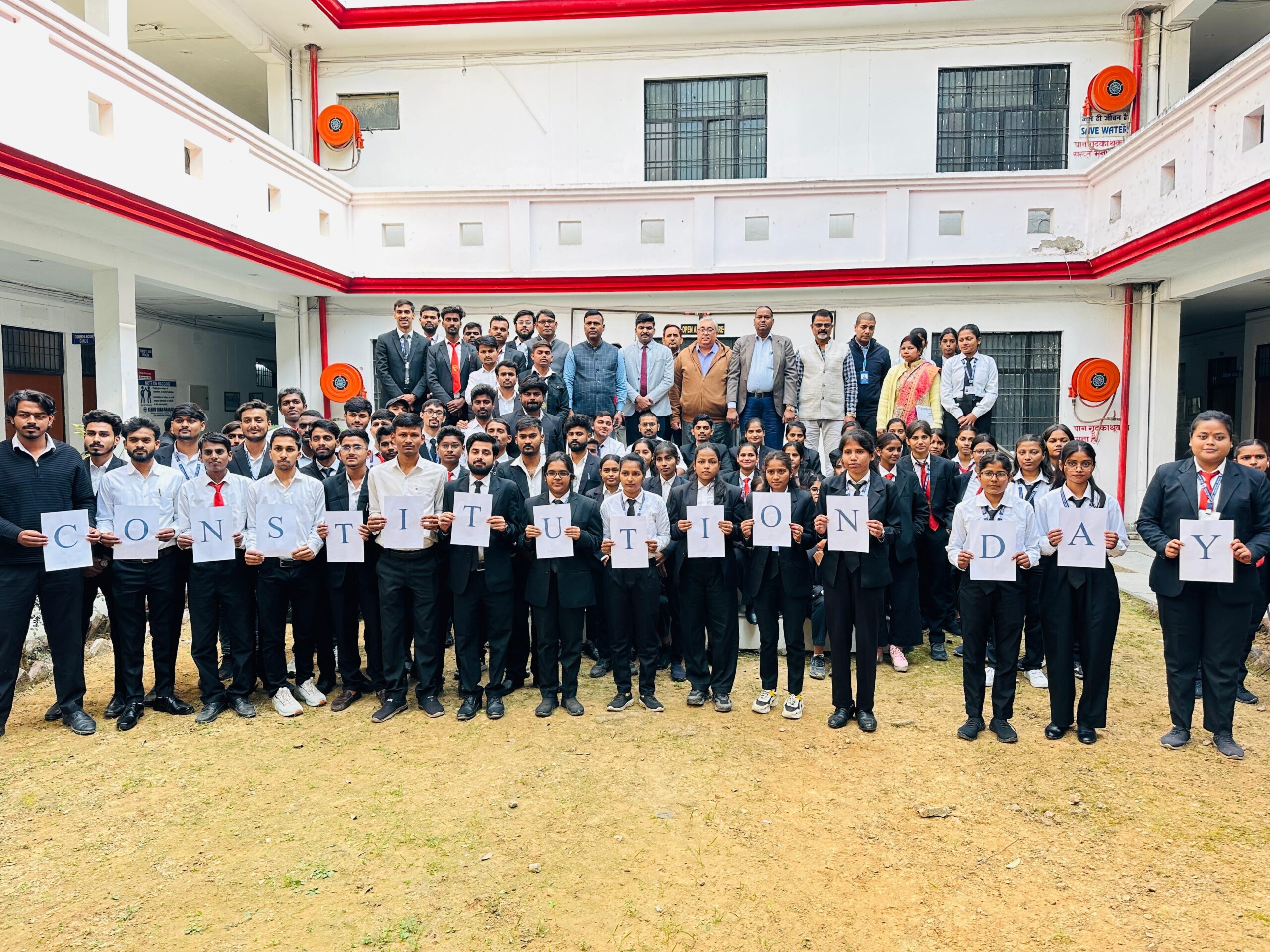 प्रयागराज। नेहरू ग्राम भारती मानित विश्वविद्यालय प्रयागराज के विधि संकाय में संविधान दिवस बड़े उत्साह के साथ मनाया गया। कार्यक्रम का शुभारंभ मुख्य अतिथि मनोज कुमार भाष्कर (न्यायिक मजिस्ट्रेट, ग्राम न्यायालय, हंडिया) एवं विशिष्ट अतिथि IQAC निदेशक डॉ. हिमांशु टंडन द्वारा दीप प्रज्ज्वलन एवं माँ सरस्वती की प्रतिमा पर माल्यार्पण कर किया गया। छात्र छात्राओं ने मुख्य अतिथि एवं विशिष्ट अतिथि का पुष्पगुच्छ देकर स्वागत किया।कार्यक्रम में बी०ए०एलएल०बी०, एलएल०बी०, एलएल०एम०छात्रों के बीच संविधान के विभिन्न प्रावधानों पर आधारित भाषण प्रतियोगिता आयोजित की गई तथा सभी उपस्थित छात्र-छात्राओं द्वारा संविधान की प्रस्तावना का सामूहिक वाचन किया गया।