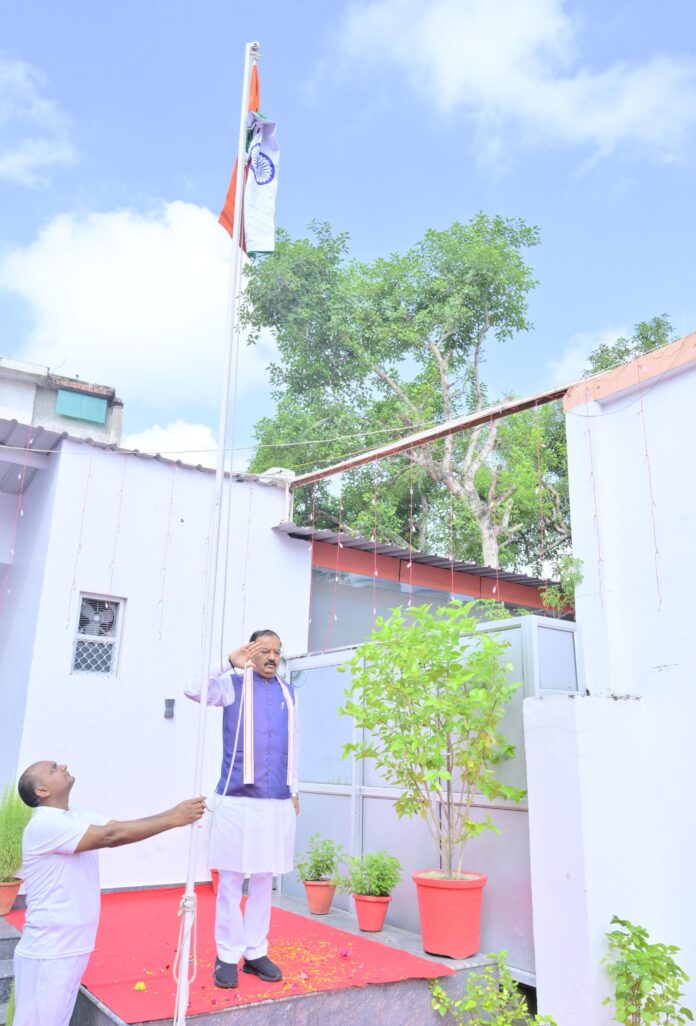 उत्तर प्रदेश के उप मुख्यमंत्री श्री केशव प्रसाद मौर्य ने 79 वें स्वतंत्रता दिवस के अवसर पर अपने कैम्प कार्यालय 7-कालिदास मार्ग पर ध्वजारोहण किया।देश व प्रदेशवासियों को स्वतंत्रता दिवस की बधाई व शुभकामनायें शुभकामनायें दी।