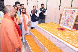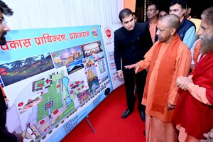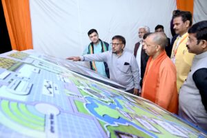 प्रधानमंत्री नरेन्द्र मोदी के प्रस्तावित कार्यक्रम से छः दिन पूर्व शनिवार को मुख्यमंत्री योगी आदित्यनाथ शनिवार को प्रयागराज पहुंचे। इस दौरान मुख्यमंत्री योगी ने प्रधानमंत्री मोदी के कर कमलों से उद्घाटन होने वाली और दिव्य, भव्य एवं डिजिटल महाकुम्भ -2025 के दृष्टिगत चल रही सौंदर्यीकरण एवं अन्य परियोजनाओं का भी स्थलीय निरीक्षण किया। उन्होंने पूर्ण हो चुकी परियोजनाओं पर संतोष व्यक्त किया और बची हुई परियोजनाओं को गुणवत्तापूर्ण ढंग से हर हाल में 10 दिसंबर तक पूरा करने का अधिकारियों को दिशा-निर्देश दिया।