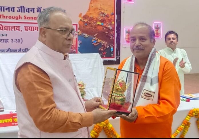 उत्तर प्रदेश राजर्षि टंडन मुक्त विश्वविद्यालय, प्रयागराज में महाकुंभ : सनातन मूल्य के माध्यम से मानव जीवन में परिवर्तन विषय पर दो दिवसीयअंतरराष्ट्रीय सम्मेलन का समापन बुधवार को हो गया। समापन सत्र के मुख्य अतिथि प्रोफेसर कृष्ण बिहारी पांडेय, पूर्व अध्यक्ष, लोक सेवा आयोग, उत्तर प्रदेश तथा पूर्व कुलपति, छत्रपति शाहूजी महाराज विश्वविद्यालय, कानपुर ने कहा कि आज सनातन मूल्य को जन-जन तक पहुंचाने की आवश्यकता है। इसके लिए विश्वविद्यालय महत्वपूर्ण योगदान कर सकते हैं। उन्होंने कहा कि आज कल हमारे जीवन में नैतिक मूल्यों का हास होता जा रहा है। आज हमको हर घर तक सनातन मूल्यों को पहुंचाना है। जिससे नैतिक मूल्यों का विकास हो सके।