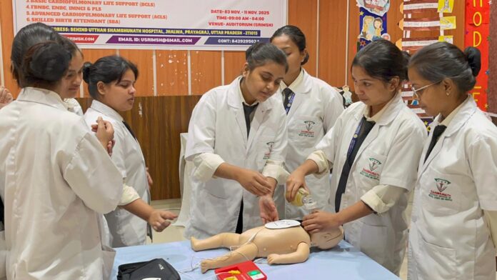 प्रयागराज। शंभूनाथ रिसर्च इंस्टिट्यूट ऑफ मेडिकल साइंसेज एंड हॉस्पिटल, प्रयागराज में आठ दिवसीय नर्सिंग मॉड्यूल कार्यशाला का सफल समापन हुआ। इस कार्यशाला का उद्देश्य विद्यार्थियों को आधुनिक स्वास्थ्य सेवाओं की तकनीकों, आपातकालीन प्रबंधन और व्यावहारिक नर्सिंग कौशल में दक्ष बनाना था। इस प्रशिक्षण में प्रतिभागियों को विद्यांता स्किल इंस्टिट्यूट, गुरुग्राम के प्रशिक्षक डेनी सिबी और सुश्री फियोना कुरियाकोज़ ने प्रशिक्षित किया। कार्यशाला का उद्घाटन संस्थान के सचिव कौशल कुमार तिवारी ने किया, जिन्होंने कहा कि नर्सिंग केवल एक पेशा नहीं बल्कि मानवता की सेवा का सर्वोच्च रूप है; ऐसे प्रशिक्षण विद्यार्थियों में संवेदनशीलता, तत्परता और तकनीकी दक्षता का समन्वय स्थापित करते हैं। एस.आई.ई.टी. के निदेशक डॉ. आर.के. सिंह ने कहा कि व्यावहारिक प्रशिक्षण नर्सिंग शिक्षा की आत्मा है और इस कार्यशाला ने विद्यार्थियों में वैज्ञानिक दृष्टिकोण, निर्णय लेने की क्षमता और आत्मविश्वास का विकास किया है। संस्थान . के प्राचार्य डॉ. संतोष एस. यू. ने इसे विद्यार्थियों के लिए एक ‘लर्निंग लैब’ बताया, जिसने उन्हें योग्य, आत्मविश्वासी और दयालु नर्स बनने की दिशा में प्रेरित किया। आठ दिनों तक चले इस प्रशिक्षण में बीएससी नर्सिंग के विद्यार्थियों ने प्राथमिक उपचार , स्वास्थ्य मूल्यांकन , नवजात शिशु की मूल देखभाल , जन्म के तुरंत बाद की देखभाल, बाल्यावस्था रोग प्रबंधन, बाल जीवन समर्थन , कुशल प्रसव सहायक , सुरक्षित प्रसव अनुप्रयोग , बुनियादी हृदय-जीवन सहायता तथा विस्तृत हृदय-जीवन सहायता जैसे विषयों पर व्यावहारिक अभ्यास किया तथा मानव मॉडल के माध्यम से हाथों से अभ्यास कर वास्तविक परिस्थितियों में कार्य करने का अनुभव प्राप्त किया। कार्यशाला का सफल संचालन नर्सिंग विभाग की शिक्षिकाओं श्रीमती बेबी जैसवाल एवं सुश्री रीता पोखरिया द्वारा किया गया। विद्यार्थियों ने अपने अनुभव साझा करते हुए कहा कि “इस कार्यशाला ने हमें न केवल आधुनिक स्वास्थ्य सेवाओं की तकनीकों में दक्ष बनाया, बल्कि आत्मविश्वास, टीमवर्क और नेतृत्व क्षमता भी प्रदान की। प्रशिक्षण के दौरान हमने अपनी नर्सिंग स्किल्स में उल्लेखनीय सुधार किया है, और अब हम इन कौशलों का प्रयोग रोगियों की देखभाल और स्वास्थ्य सेवा के हर क्षेत्र में समर्पण और दक्षता के साथ करेंगे।”समापन सत्र में सचिव, निदेशक एवं प्राचार्य ने विद्यार्थियों को बधाई देते हुए कहा कि यह कार्यशाला उनके ज्ञान, कौशल और आत्मविश्वास को सुदृढ़ करेगी तथा उन्हें आधुनिक स्वास्थ्य सेवाओं के अनुरूप एक दक्ष, संवेदनशील एवं जिम्मेदार नर्सिंग प्रोफेशनल बनने की दिशा में अग्रसर करेगी।
