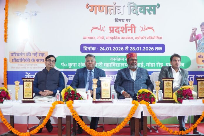 सूचना एवं प्रसारण मंत्रालय के केंद्रीय संचार ब्यूरो द्वारा इंटीग्रेटेड कम्युनिकेशन एंड आउटरीच प्रोग्राम (आई.सी.ओ.पी.) के अंतर्गत प्रयागराज जिले की मेजा तहसील स्थित पंडित कृपाशंकर तिवारी महाविद्यालय में दिनांक 24 जनवरी से 28 जनवरी 2026 तक आयोजित पाँच दिवसीय मल्टीमीडिया प्रदर्शनी, कार्यशाला, व्याख्यान, गोष्ठी, सांस्कृतिक कार्यक्रम एवं प्रश्नोत्तरी प्रतियोगिता आज संपन्न हुई।