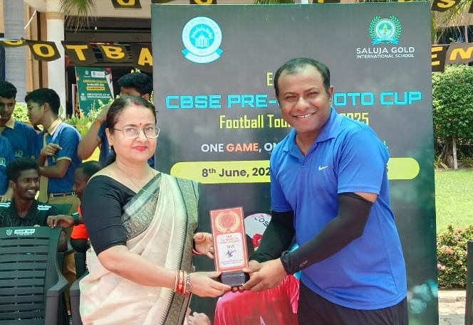 झारखण्ड के गिरडीह मधुपुर स्थित सलूजा गोल्ड इंटरनेशनल स्कूल में आयोजित हुई सुब्रोतो कप ईस्ट जोन U17 फुटबॉल प्रतियोगिता में विष्णु भगवान पब्लिक स्कूल झलवा प्रयागराज की फुटबॉल टीम ने कांस्य पदक जीता I पुरस्कार वितरण समारोह के दौरान विष्णु भगवान पब्लिक स्कूल के प्रशिक्षक इंद्रनील घोष को सलूजा गोल्ड इंटरनेशनल स्कूल की प्रधानाचार्य ममता मिश्रा ने सम्मांनित किया I