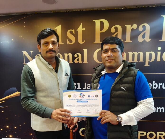 इंडियन डिसएबिलिटी डार्ट्स एसोसिएशन द्वारा आयोजित राष्ट्रीय स्तरीय पैरा डार्ट्स चैंपियनशिप–2026, जो दिनांक 31 जनवरी एवं 1 फरवरी 2026 को कानपुर (उत्तर प्रदेश) में संपन्न हुई, में डॉ. त्रिपाठी ने उत्तर प्रदेश का प्रतिनिधित्व करते हुए उत्कृष्ट एवं प्रभावशाली प्रदर्शन किया। इस प्रतिष्ठित प्रतियोगिता में देशभर से 120 से अधिक दिव्यांग खिलाड़ियों ने सहभागिता की, जहाँ डॉ. त्रिपाठी ने अपने कौशल, एकाग्रता और अनुशासन से विशेष पहचान बनाई।