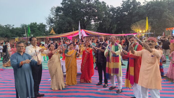 धनैचा – मलखानपुर स्थित आशुतोष मेमोरियल स्कूल में नवरात्रि के पावन अवसर पर आयोजित गरबा और डांडिया महोत्सव हर्षोल्लास के साथ मनाया गया। इस अवसर पर गोविंद वल्लभ पंत सामाजिक विज्ञान संस्थान की निदेशिका डॉ अर्चना सिंह एवं सेंट्रल एकेडमी सीनियर सेकेंडरी स्कूल के प्राचार्य श्री आनंद पांडे मुख्य अतिथि के रूप में उपस्थित रहे। कार्यक्रम का प्रारंभ नवदुर्गा की रूप सज्जा में विराजमान नौ कन्याओं की आरती उतारने से की गई | तत्पश्चात आस्था-अनुष्का बहनो ने माता रानी के तीन मधुर भजन प्रस्तुत कर श्रोताओं को मंत्रमुग्ध कर दिया। विद्यालय के बच्चों ने रंगारंग कार्यक्रम प्रस्तुत कर समा बांध दिया। कक्षा 7 में पढ़ने वाली छात्रा दामिनी ने मां काली के संघारकारी रूप का चित्रण एवं नृत्य प्रस्तुत किया । प्रोग्राम की अगली कड़ी में अतिथियों ने लकी ड्रा निकाला जिसमें प्रथम द्वितीय एवं तृतीय पुरस्कार के रूप में क्रमशः साइकिल मिक्सर जूसर तथा आयरन एवं 50 गिफ्ट हैंपर प्रदान किए गए। कार्यक्रम में विशाल संख्या में अ‌न्यान्य महानुभाव तथा अभिभावक उपस्थित रहे। प्रोग्राम के तीसरे चरण में गरबा एवं डांडिया का आयोजन किया गया जिसमें आमंत्रित अतिथियों, अभिभावकों एवं स्कूल के बच्चों ने उल्लास के साथ गरबे का आनंद उठाया। इसके पूर्व विद्यालय परिसर में पधारने पर अध्यक्ष प्रोफेसर जे पी एन मिश्रा एवं निदेशक डॉक्टर गिरीश कुमार पांडे ने अतिथियों का भावभीना स्वागत किया। विद्यालय के समस्त शिक्षक -शिक्षिकाओं के महनीय सहयोग से कार्यक्रम गरिमामय रूप में संपन्न हुआ। मंच का संचालन शिक्षक श्री वातेंद्र कुमार सिंह ने किया।