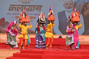 कार्यक्रम की शुरुआत में उन्होंने अपने विशिष्ट अंदाज में रागों पर आधारित तालों का प्रदर्शन किया, जिसमें उनके हाथों की गति और ताल की बारीकियां देखने लायक थीं। उनकी प्रस्तुति ने भारतीय शास्त्रीय संगीत की गहराई और विविधता को बखूबी उजागर किया। विजय घाटे ने “झपताल” और “तीनताल” में जो पकड़ और भाव पेश किए, वह दर्शकों को संगीतमय अनुभूति देने में पूरी तरह सफल रहे। लोकनृत्यों की कड़ी में पारंपरिक पंजाबी परिधानों में सजे कलाकारों ने अपनी गिद्दा लोकनृत्य की ऊर्जावान प्रस्तुति देकर दर्शकों को झूमने पर मजबूर कर दिया। उनकी हर हरकत, ताल, और मुद्राओं में पंजाब की मिट्टी की सोंधी खुशबू महसूस हुई। मनमोहक गीतों और तालबद्ध प्रस्तुतियों से कलाग्राम के मंच को जीवंत बना दिया। वही असम से आए कलाकारों ने ढोल की थाप, बांसुरी की धुन पर बिहू नृत्य की प्रस्तुति देकर असम की लोक परंपराओं और संस्कृति को दर्शकों के समक्ष पेश किया। जबकि उड़ीसा के कलाकारों ने सम्बलपुरी नृत्य, मथुरा के कलाकारों ने ब्रज के नृत्य की प्रस्तुति देकर खूब तालियां बटोरी। विशेष प्रस्तुति में राष्ट्रीय नाट्य विद्यालय द्वारा नाटक समुद्र मंधन का मंचन किया गया। इस मौके पर काफी संख्या में दर्शक उपस्थित रहे।
