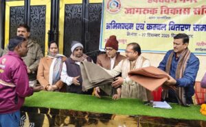 मीरापुर स्थित रजवाड़ा बैंक्वेट हॉल में हर्ष वर्धन विकास जागरूक समिति द्वारा स्वच्छता प्रहरी अभिनंदन एवं कंबल वितरण समारोह का आयोजन किया गया। कार्यक्रम में समिति के अध्यक्ष अभिषेक ठाकुर ने स्वच्छता प्रहरियों को ठंड के मौसम को देखते हुए गर्म कंबल वितरित कर उनका अभिनंदन किया।