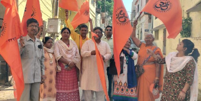 इस घर घर भगवा ध्वज लगाया गया और लगाने के लिए प्रेरित किया गया ।