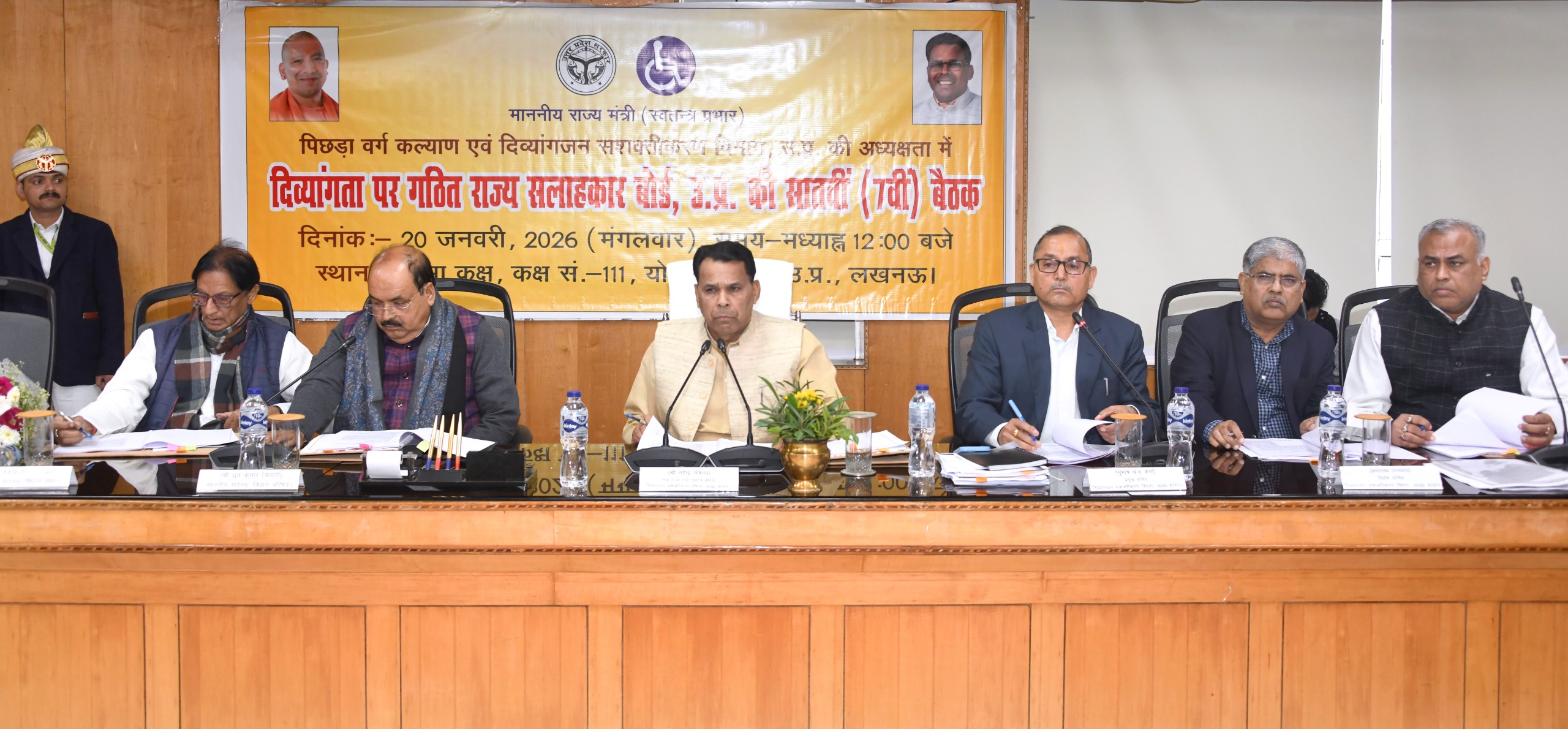 लखनऊ।  दिव्यांगजनों के अधिकारों के संरक्षण और उनके सशक्तिकरण को लेकर योगी सरकार पूरी तरह प्रतिबद्ध है। यह बात पिछड़ा वर्ग कल्याण एवं दिव्यांगजन सशक्तिकरण राज्य मंत्री (स्वतंत्र प्रभार) नरेन्द्र कश्यप ने मंगलवार को योजना भवन स्थित सभाकक्ष में आयोजित दिव्यांगता पर गठित राज्य सलाहकार बोर्ड की सातवीं बैठक की अध्यक्षता करते हुए कही।
