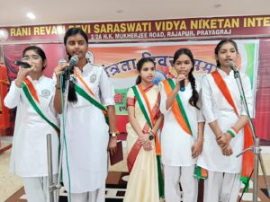 प्रयागराज l विद्या भारती से संबद्ध काशी प्रांत के रानी रेवती देवी सरस्वती विद्या निकेतन इंटर कॉलेज राजापुर, प्रयागराज में 79वां स्वतंत्रता दिवस समारोह प्रधानाचार्य बांके बिहारी पाण्डेय के मार्गदर्शन में आकर्षक सांस्कृतिक कार्यक्रमो के साथ हर्षोल्लास पूर्वक मनाया गया l