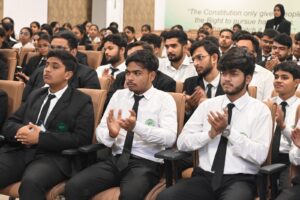 प्रयागराज। शम्भूनाथ इंस्टिट्यूट ऑफ लॉ में अपने दो दिवसीय इन्ट्रा मूट कोर्ट कम्पटीशन का आयोजन 30-31 अक्टूबर 2025 को किया। जिसका उद्देश्य छात्र एवं छात्राओं को भविष्य में एक अच्छे अधिवक्ता और न्यायाधीश बनने के गुण सीखना सिखाना और न्यायिक नियमांवलियों से परिचित कराना था। जिसमें 62 टीमों ने अपना पंजीकरण कराया। 22 टीमें सेमीफाइनल तक प्रर्दशन की। 4 सर्वश्रेष्ठ टीमों ने अंतिम चरण में प्रर्दशन किया जिसमें से 2 टीम विजेता और उपविजेता रहीं। उपरोक्त प्रतियोगिता संस्थान के निदेशक डॉ० आर के सिंह के निर्देशन तथा प्रिंसिपल शम्भूनाथ इंस्टिट्यूट ऑफ लॉ, डॉ० रजनी त्रिपाठी के संचालन में श्रवन दुबे तथा अन्य शिक्षकगणों के सहयोग से कार्यान्वित हुआ। कार्यक्रम का दीप प्रज्ज्वलन संस्थान के सचिव के के तिवारी द्वारा किया गया ।जिसमें उन्होनें छात्रों के उज्जवल भविष्य की कामना करते हुए उन्हें शुभाशीष दिया। विजेता (कृतिका यादव श्रेया पाण्डेय और संयम सिंह) और उपविजेता टीम (वैष्णवी टंडन अदिती श्रीवास्तव और अर्जुन सिंह), बेस्ट स्पीकर वैष्णवी टंडन और बेस्ट मेमोरियल अक्षत मिश्रा को पुरस्कार संस्थान के मैनेजिंग डायरेक्टर आभिषेक तिवारी एवं निदेशक डॉ० आर के सिंह द्वारा दिया गया। कार्यक्रम के कुशल समापन में आशुतोष, इकरा, श्रेया, साक्क्षी, आर्यन, इषिता, स्नेहा, रमशा का सहयोग सराहनीय रहा।