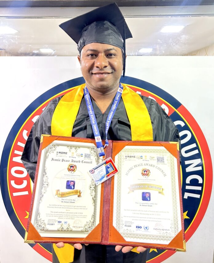 प्रयागराज के फुटबॉल प्रशिक्षक एवं राष्ट्रीय खेल प्रबंधक इंद्रनील घोष को खेल के छेत्र में असाधारण योगदान के लिए मानद डॉक्टरेट उपाधि से नई दिल्ली में सम्मानित किया गया I आई पी ए सी के निदेशक रितेश कुकरेजा ने इंद्रनील को मानद डॉक्टरेट उपाधि प्रदान किया I
