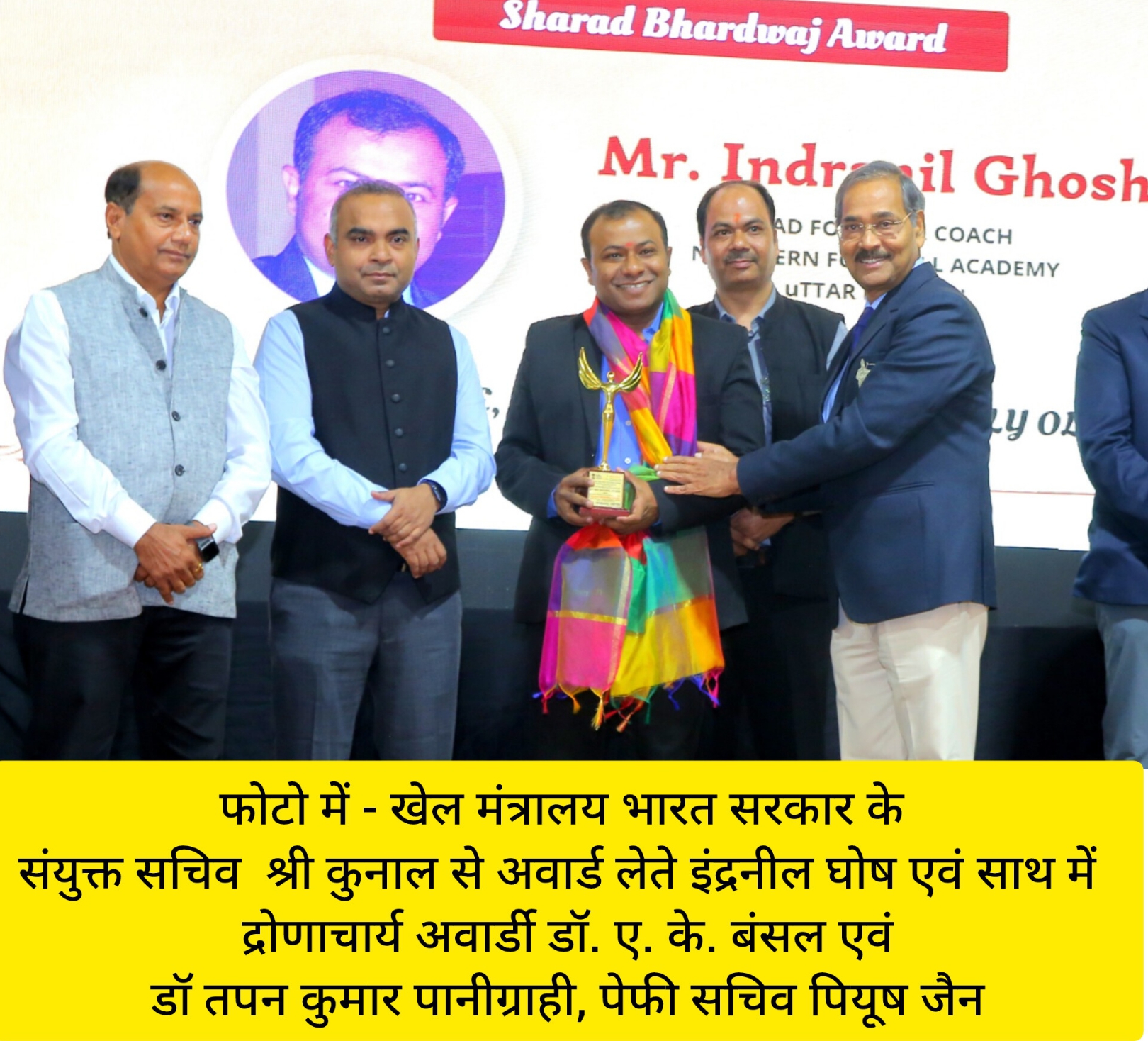 प्रयागराज के फुटबॉल प्रशिक्षक इंद्रनील घोष को सातवे राष्ट्रीय पेफी अवार्ड (फिजिकल एजुकेशन फाउंडेशन ऑफ़ इंडिया) में सर्वश्रेष्ठ टेक्निकल ऑफिसियल से सम्मानित किया गया I पेफी खेल एवं युवा मंत्रालय, भारत सरकार, द्वारा प्रमाणित एक राष्ट्रीय खेल प्रोत्साहन संस्था है I पेफी ने एनडीएमसी कन्वेंशन हॉल नई दिल्ली में देश भर से शारीरिक शिक्षा और खेल के क्षेत्र में उत्कृष्ट योगदान दे रहे 29 खेल शिक्षकों, प्रशिक्षकों, खेल प्रबंधक, स्पोर्ट्स टेक्निकल ऑफिशल्स को सम्मानित किया ।