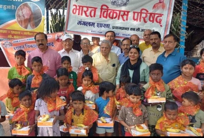भारत विकास परिषद मंगलम द्वारा जगदीश रैंप संगम स्थित कुष्ठ बस्ती में नवरात्रि के प्रथम दिन के अवसर पर गरीब और अनाथ कन्याओं का पूजन चुनरी चंदन रोली द्वारा किया गया l तथा उन्हें भोजन के पैकेट का वितरण , फल एवं अर्थ दान किया गया भारत विकास परिषद मंगलम के संरक्षक श्री नागेंद्र सिंह ने बताया कि परिषद अपने सेवा कार्यों को कुष्ठ बस्ती में वर्ष पर्यंत करती रहती है l प्रतिवर्ष नवरात्रि में कन्या पूजन अनुष्ठान के अतिरिक्त फ्री मेडिकल कैंप तथा अन्य सेवाएं देती है l मुख्य रूप से उपस्थित शिवनंदन गुप्ता, वी.पी गुप्ता , निखिलेश श्रीवास्तव जानवी मिश्रा, श्यामल मुखर्जी, प्रशांत गुप्ता , प्रदीप जायसवाल , वीरेंद्र कपूर अनामिका बरनवाल, विनय सिन्हा , कमला कांत पांडे इत्यादि लोग सेवा कार्य में लग रहे।