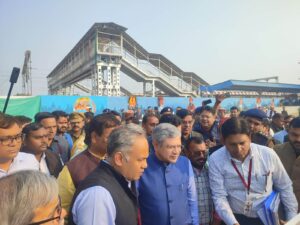 केंद्रीय रेल मंत्री, श्री अश्विनी वैष्णव ने निरीक्षण के अगले क्रम में स्टेशन रिडेवलपमेंट के अंतर्गत विकसित किये जा रहे प्रयागराज जंक्शन के निर्माण कार्यों का निरीक्षण किया और कार्य को गुणवत्ता और समय के साथ पूर्ण करने के निर्देश दिए । केंद्रीय रेल मंत्री, श्री अश्विनी वैष्णव ने प्रयागराज जंक्शन पर आयोजित प्रेस वार्ता में मीडिया कर्मियों को संबोधित करते हुये कहा कि महाकुंभ -2025 में बड़ी संख्या में श्रद्धालुओं के आने के संभावना को देखते हुये गत 2½ वर्षों से वृहत स्तर पर तैयारियाँ चल रही हैं । इससे संबंधित कार्यों में गत 2 वर्षों में प्रयागराज क्षेत्र में 5000 करोड़ रुपये से अधिक धनराशि खर्च की गई है । इस धनराशि से बड़े स्तर पर विकास किए गए हैं । प्रयागराज क्षेत्र में सुगम रेल परिचालन के लिए 21 रोड ओवर ब्रिजों और रोड अंडर ब्रिजों का निर्माण किया गया है । महाकुंभ -2025 के दौरान 3000 स्पेशल गाडियाँ सहित 13000 से अधिक रेल गाडियाँ चलायी जाएंगी जब कि गत कुम्भ मेला में 7000 गाड़ियों का संचालन किया गया था । छोटी दूरी के लिए बड़ी संख्या में मेमू ट्रेन का इंतजाम किया जा रहा है । महाकुंभ -2025 के रेगुलर गाड़ियों में दोनों तरफ इंजन लगाया जाएगा जिससे समय की बचत होगी । बनारस से प्रयागराज के मध्य दोहरीकरण किया गया है इसी खंड में गंगा नदी पर 100 वर्ष बाद नया ब्रिज बने गया है। एवं फाफामऊ-जंघई के मध्य दोहरीकरण होने से ट्रेन परिचालन क्षमता में वृद्धि हुयी है । महाकुंभ -2025 के दौरान बेहतर सुविधाओं के लिए विभिन्न स्टेशनों पर 43 स्थायी होल्डिंग एरिया का निर्माण किया गया है । प्रयागराज क्षेत्र के सभी स्टेशनों पर सभी फुट ओवर ब्रिजों पर एकदिशीय यातायात की व्यवस्था की गई है। इस अवसर पर उन्होंने मीडिया कर्मियों को महाकुंभ के दौरान दिशावार कलर कोडिंग व्यवस्था और टिकटिंग व्यवस्था के बारे में भी बताया।
