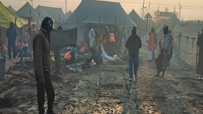 माघ मेला क्षेत्र के सेक्टर छह स्थित स्थित श्री परांकुश वैष्णव सेवा आश्रम के शिविर में बुधवार को आग लग गई। आग लगते ही शिविर में अफरा-तफरी मच गई।
