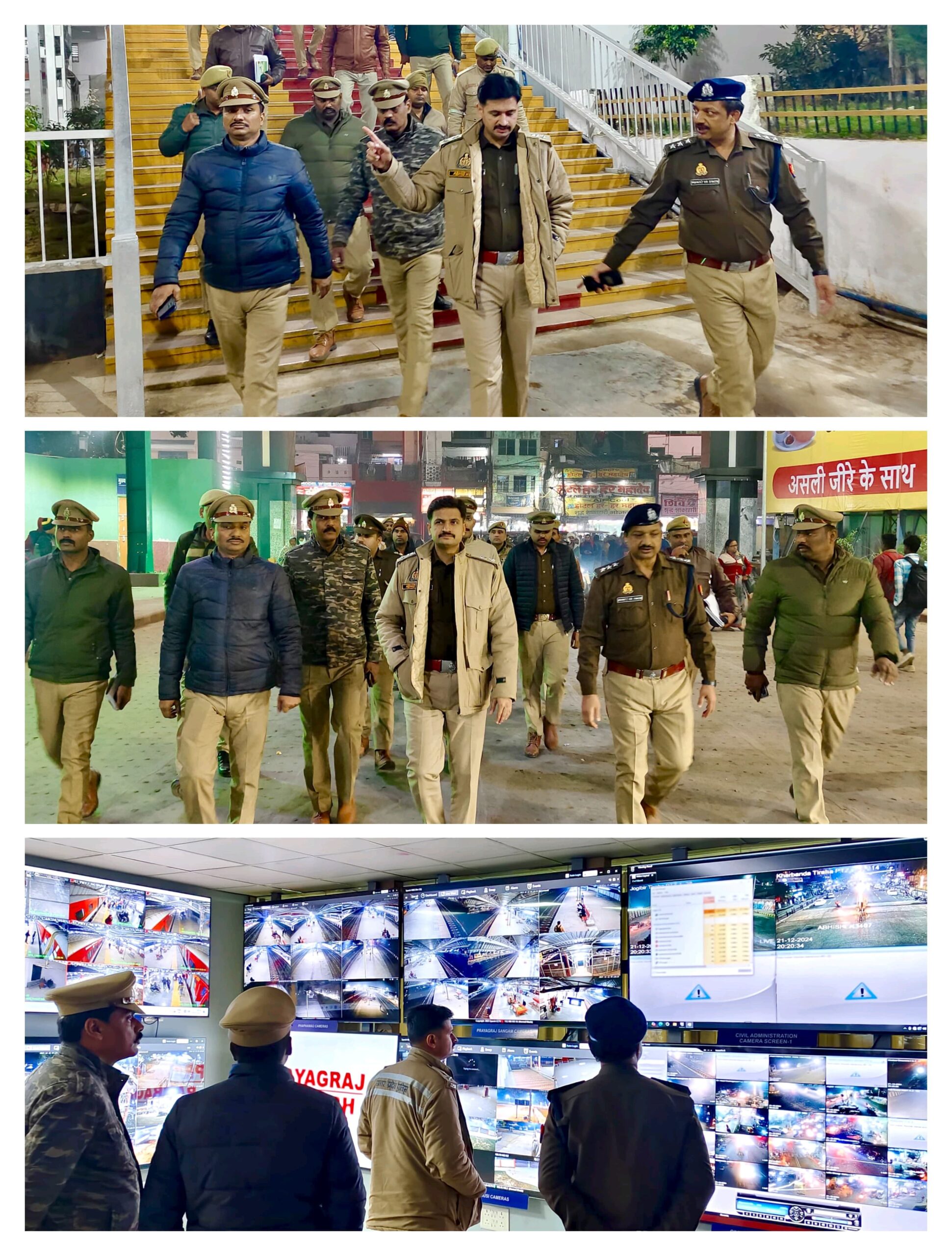 महाकुंभ-2025 के निर्विघ्न एवं सकुशल आयोजन के दृष्टिगत 21 दिसंबर को पुलिस उपायुक्त नगर द्वारा नगर क्षेत्र के प्रयागराज जंक्शन रेलवे स्टेशन का भ्रमण कर श्रद्धालुओं की सुविधा व सुरक्षा हेतु किए जा रहे प्रबंधों का निरीक्षण किया गया। साथ ही नगर क्षेत्र के विभिन्न भीड़भाड़ वाले स्थलों, चौराहों व अन्य सार्वजनिक स्थलों पर पैदल गश्त कर कानून व्यवस्था का जायजा लिया गया तथा सम्बन्धित को आवश्यक दिशा-निर्देश दिए गए। इस अवसर पर सहायक पुलिस आयुक्त कोतवाली व अन्य पुलिस अधिकारी/कर्मचारीगण उपस्थित रहे।