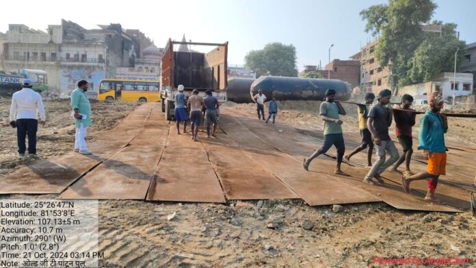 महाकुंभ मेला में गंगा पर पाण्टून पुलों का निर्माण आज से शुरू हो गया है। कुंभ मेला सीडी फोर्ड लोक निर्माण विभाग के अधिशाषी अभियंता सुरेन्द्र कुमार सिंह ने बताया कि अभी चार पाण्टून पुलों का निर्माण शुरू हो गया है। उन्होंने बताया कि ओल्ड जीटी रोड पर दो पाण्टून पुल, गंगोली शिवाला मार्ग पर एक पाण्टून पुल और हरिश्चंद्र मार्ग के घाट पर एक पाण्टून पुल का निर्माण हो रहा है। उन्होंने बताया कि पाण्टून पुलों का निर्माण कार्य नवंबर तक पूरा हो जाएगा। महाकुंभ के मेलाधिकारी विजय किरन आनंद ने बताया कि महाकुंभ का प्रचार प्रसार देश और विश्व स्तर पर किया जा रहा है, ऐसे में संत, महात्मा, स्नानार्थियों और श्रद्धालुओं की भारी भीड़ को देखते हुए पर्याप्त संख्या में पाण्टून पुल बनाये जा रहे हैं। उन्होंने बताया कि पिछले महाकुंभ में 22 पाण्टून पुल बनाये गये थे लेकिन इस बार 30 पाण्टून पुल बनाये जा रहे हैं जिसका निर्माण कार्य शुरू हो गया है। उन्होंने बताया कि तीन पाण्टून पुल नैनी से मेला क्षेत्र के झूंसी की ओर बनाये जा रहे हैं। मेलाधिकारी विजय किरन आनंद ने बताया कि इस बार सभी पाण्टून पुल 30 नवंबर तक तैयार हो जाएगा जिससे संत, महात्मा, श्रद्धालुओं और स्नानार्थियों को मेला क्षेत्र में आने – जाने में कोई परेशानी न होने पाये।