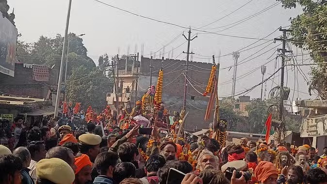 Mahakumbh : आवाहन अखाड़े के संतों ने राजशाही अंदाज में किया छावनी प्रवेश, घोड़े-बग्घी पर सवार होकर निकले साधु