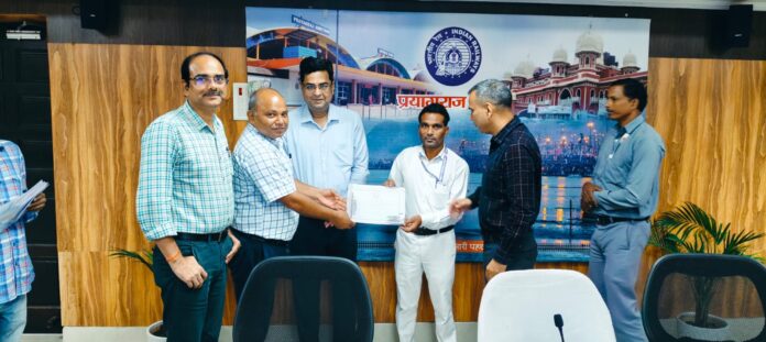 आज मण्डल रेल प्रबंधक/प्रयागराज, हिमांशु बडोनी ने मण्डल रेल प्रबंधक कार्यालय के ‘संकल्प सभागार’ में सतर्कता पूर्वक कार्य करने वाले 15 कर्मचारियों को नकद पुरस्कार व प्रशस्ति पत्र से सम्मानित किया । मण्डल रेल प्रबंधक/प्रयागराज ने कर्मचारियों के कार्य की प्रशंसा करते हुए कहा कि आपने जिम्मेदारी से कार्य करते हुए अपने कर्तव्य का अच्छे से निर्वहन किया जिससे किसी संभावित दुर्घटनाओं को रोक जा सका । आप सभी को आगे भविष्य में भी इसी तरह से अच्छा कार्य करना है। रेल का सुरक्षित और संरक्षित परिचालन हम सभी की जिम्मेदारी है । पुरस्कार प्राप्त करने वाले कर्मचारियों ने ब्रेक बाइंडिंग, हैंगिंग पार्ट, असामान्य आवाज, यात्री के गाड़ी से गिरना जैसी घटनाओं पर तत्काल कार्यवाही की जिससे दुर्घटनाओं को रोक जा सका ।
