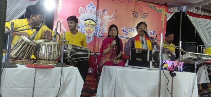 प्रयागराज l एमएनएनआईटी के आवासीय परिसर में दुर्गा पूजा समिति द्वारा 28 सितंबर से 2 अक्टूबर तक आयोजित दुर्गोत्सव- 2025 के प्रथम दिन महाषष्ठी तिथि को प्रयागराज के प्रसिद्ध भजन एवं गजल गायक मनोज गुप्ता ने मातारानी सहित समस्त देवी देवताओं की स्तुति भजनों के माध्यम से प्रस्तुत कर श्रोताओं को मंत्रमुग्ध कर दिया l