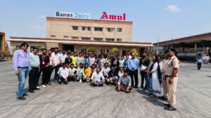 छात्रों ने अमूल के व्यापार मॉडल, उनके विपणन दृष्टिकोण, वित्तीय योजनाओं और उपभोक्ता तक उत्पाद पहुँचाने के प्रभावी तरीकों पर विशेष ध्यान दिया। इस औद्योगिक यात्रा ने छात्रों को वास्तविक उद्योग के माहौल में व्यापार और विपणन रणनीतियों को समझने का एक अनूठा अवसर प्रदान किया।