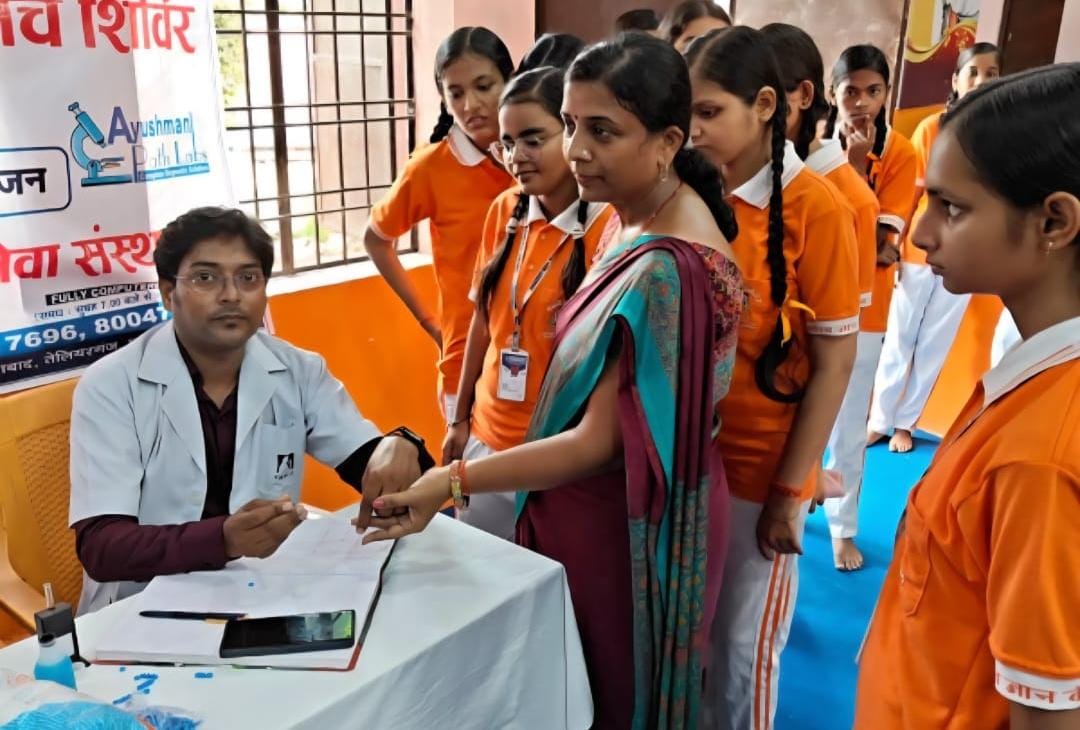 आज भारत विकास परिषद् मंगलम् प्रयागराज द्वारा सेण्ट्रल जेल नैनी के सामने खरकौनी रोड, माधवपुर स्थित *सरस्वती विद्या मन्दिर माधव ज्ञान केन्द्र* में एक वृहद (मेगा) एनीमिया/हीमोग्लोबिन जांच शिविर आयोजित किया गया l जिसमें 243 से अधिक छात्राओं की हीमोग्लोबिन/एनीमिया जांच की गई l जिसमें 40 छात्रायें एनेमिक पाई गईं। जांच में सम्मिलित सभी छात्राओं विशेषतया एनेमिक छात्राओं को मनीष सिंह प्रान्तीय संयोजक सेवा की ओर से पर्याप्त मात्रा में दवाइयाँ प्रदान की गईं। संरक्षक नागेंद्र सिंह ने बताया कि परिषद द्वारा समय समय पर स्कूलों में जाकर बच्चियों की मेडिकल जांच की जाती है l और उचित संसाधन उपलब्ध कराया जाता है l कार्यक्रम का संयोजन सुनील श्रीवास्तव गजेंद्र श्रीवास्तव और सिद्धार्थ प्रान्तीय महासचिव अमित श्याम विद्यालय के प्रधानाचार्य श्री अजय कुमार मिश्र ने किया l आयुष्मान पैथोलॉजी के डा. अंशुमान प्रजापति तथा उनके सहयोगियों की भी प्रशंसनीय भूमिका रही l मुख्य रूप से उपस्थित शिवनन्दन गुप्ता, अरुण जायसवाल, संरक्षक नागेंद्र सिंह , आर एस सिंह, अमित श्याम, रश्मि शुक्ला, वीपी गुप्ता, सुनील श्रीवास्तव, प्रदीप जायसवाल इत्यादि उपस्थित रहे।