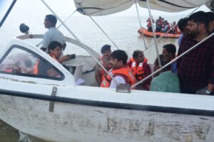 औद्योगिक विकास मंत्री उत्तर प्रदेश नन्द गोपाल गुप्ता नंदी ने रविवार को बक्शी बांध पहुंचकर वहां से मोटर बोट से दारागंज, बघाड़ा, सलोरी, गोविंदपुर सहित अन्य बाढ़ प्रभावित क्षेत्रों का भ्रमण कर बाढ़ की स्थिति का जायजा लिया। मंत्री ने बाढ़ प्रभावित लोगो के लिए सभी आवश्यक व्यवस्थायें सुनिश्चित किए जाने के लिए आवश्यक दिशा-निर्देश सम्बंधित अधिकारियों को निर्देश दिए है। उन्होंने बाढ़ की समस्याओं से निपटने के लिए सभी सम्बंधित विभागों को एलर्ट मोड़ पर रहने के लिए कहा है। उन्होंने कहा कि सरकार एवं प्रशासन की तरफ से बाढ़ से प्रभावित हुए लोगो के लिए पर्याप्त व्यवस्थायें की गयी है। कहा कि बाढ़ से प्रभावित लोगो की समस्याओं को सुनने व प्रशासन की ओर की गयी व्यवस्थायें के बारे में जानकारी लेने के लिए ही वे बाढ़ से प्रभावित लोगो के बीच आयें है। मंत्री नन्द गोपाल गुप्ता नंदी बाढ़ प्रभावित क्षेत्रों का भ्रमण करने के पश्चात कम्पोजिट स्कूल एलनगंज व रमा देवी गर्ल्स इण्टर कालेज-मीरापुर में बनाये गये बाढ़ राहत केन्द्रों का निरीक्षण किया तथा वहां पर रह रहे लोगो से बातचीत करते हुए उनसे व्यवस्थाओं के बारे में जानकारी ली। मंत्री ने बाढ़ राहत केन्द्र में रह रहे लोगो से बाढ़ राहत केन्द्र में उन्हें मिल रहे चाय, नाश्ता, खाना, बच्चो के लिए दूध आदि की व्यवस्थाओं के बारे में जानकारी ली, जिस पर वहां पर रह रहे लोगो के द्वारा प्रशासन द्वारा की गयी व्यवस्थाओं पर खुशी व्यक्त की गयी तथा कहा कि यहां पर चाय, नाश्ता, खाना की बढ़िया व्यवस्था है तथा सब समय पर मिल रहा है। निरीक्षण के दौरान बाढ़ राहत केन्द्र में प्रवास कर रहे लोगो को मंत्री ने अपने हाथों से खाद्धय सामाग्री का वितरण किया। मंत्री ने अधिकारियों को बाढ़ राहत केन्द्रों पर भोजन, पानी, प्रकाश, दवाओं सहित सभी आवश्यक व्यवस्थाओं को चुस्त-दूरूस्त बनाये रखने का निर्देश दिया है।