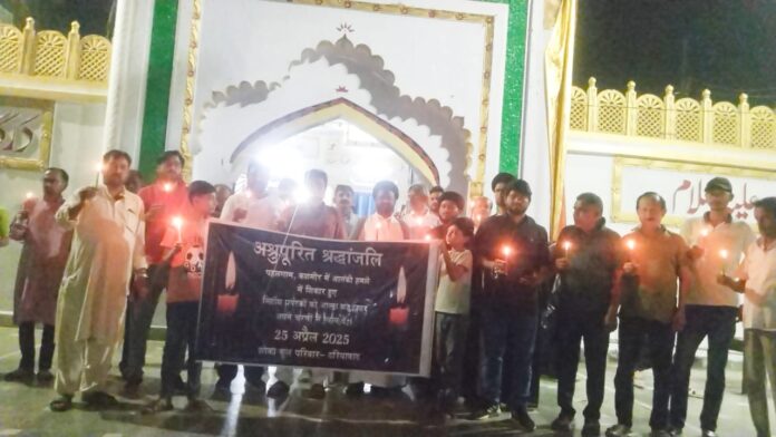 कश्मीर के पहलगाम में आतंकियों द्वारा बेगुनाह लोगों की हत्या करने पर मुसलमानों ने दरगाह हज़रत अब्बास दरियाबाद से दरगाह मौला अली दरियाबाद क़ब्रिस्तान तक शांतिपूर्ण तरीक़े से खामोश रहकर कैंडिल मार्च निकाल कर बेगुनाह भारतीयों की हत्या करने वाले आतंकी संगठनों व पाकिस्तान की मज़म्मत करने के साथ बेगुनाहों के हक़ में दुआ ए मग़फिरत कर श्रद्धांजलि अर्पित किए।हाथों में बैनर व पाकिस्तान मुर्दाबाद की तख्तियां तथा बाहों पर काली पट्टी बांधकर आतंकीयों के कायराना हमले का कड़ा विरोध किया। इस मौके पर मौलाना सैय्यद जव्वादुल हैदर रिज़वी , मौलाना इरफान ज़ैदी , मौलाना आमिरुर रिज़वी , मौलाना ज़ायर हुसैन नक़वी ,हसन नक़वी ,रौनक़ सफीपुरी , सैय्यद मोहम्मद अस्करी ,पार्षद फसाहत हुसैन ,शाहरुख शबी हसन ,मंज़र नक़वी , ज़ुलक़रनैन आब्दी ,मिर्ज़ा अज़ादार हुसैन ,शानू नक़वी , मोहम्मद सिब्तैन ,हैदर मेंहदी ,आक़िब आदि लोग उपस्थित रहे।