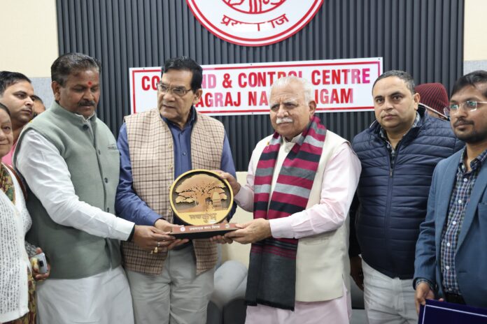 शहर की एआई मॉनिटरिंग और समस्याओं का त्वरित निस्तारण होता देख केंद्रीय मंत्री श्री खट्टर ने नगर निगम के कार्यों की सराहना की और शहर को स्वच्छ बनाए रखने के लिए बधाई दी। उन्होंने कहा कि प्रतिदिन 70 किलोमीटर तक मुख्य सड़कों के दायरे को कवर कर स्वच्छ बनाना काबिल-ए- तारीफ़ है। शहर में अतिक्रमण, सड़क किनारे पड़े कूड़े, खराब स्ट्रीट लाइट, आवारा पशुओं की निगरानी आर्टिफिशियल इंटेलीजेंस के माध्यम से की जा रही है। यह अपने आप में अचीवमेंट है। इसके बाद केंद्रीय मंत्री केंद्रीय सर्विस सेल में पहुंचे और वहां पर चल रहे काम-काज की जानकारी ली। इस दौरान नगर विकास मंत्री ए0के0 शर्मा और महापौर गणेश केसरवानी ने केन्द्रीय मंत्री को महाकुंभ-2025 का मोमेंटो भेंट किया।