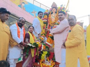 आज दारागंज प्रयागराज में मर्यादा पुरुषोत्तम भगवान श्रीराम के बाल सखा, निषाद समाज के आराध्य देव ‘श्रृंग्वेरपुर नरेश’ महाराजा निषादराज गुह्य की शोभायात्रा बड़े धूम-धाम से निकालीं गयी। आगे आगे ऊंटों, घोड़ों की सवारी चल रही थी, एक दर्जन से अधिक झांकियों में बड़े सुंदर सुंदर पात्र भगवान के रूप में शोभायमान हो रहें थे।