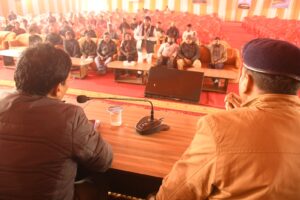 माघ मेला क्षेत्र में आने वाले लाखों श्रद्धालुओं एवं स्नानार्थियों की जल-सुरक्षा सुनिश्चित करने के उद्देश्य से बुधवार को रिज़र्व पुलिस लाइन्स, माघ मेला स्थित तीर्थराज सभागार में नाविकों एवं गोताखोरों के साथ एक महत्वपूर्ण बैठक आयोजित की गई। बैठक की अध्यक्षता अपर पुलिस अधीक्षक/नोडल अधिकारी माघ मेला श्री विजय आनन्द ने की।