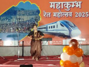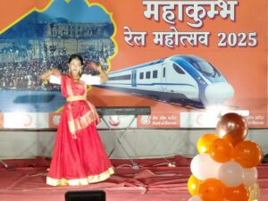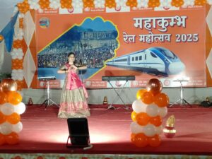 प्रयागराज मण्डल द्वारा ‘महाकुंभ रेल महोत्सव-2025’ के अंतर्गत प्रयागराज जंक्शन के प्लेटफार्म संख्या -1 के बाहरी प्रांगण में सांस्कृतिक संध्या का आयोजन किया गया । सांस्कृतिक संध्या का आयोजन 28 फरवरी, 2025 तक प्रत्येक गुरुवार को किया जाएगा । कार्यक्रम का शुभारंभ मीनल कुमार एवं राजेश कुमार द्वारा प्रस्तुत गणेश वंदना से किया गया । इस कार्यक्रम में अतिथि कलाकार डॉक्टर लक्ष्मी शुक्ला / नेहरू ग्राम भारती विश्वविद्यालय भी उपस्थित थे ।