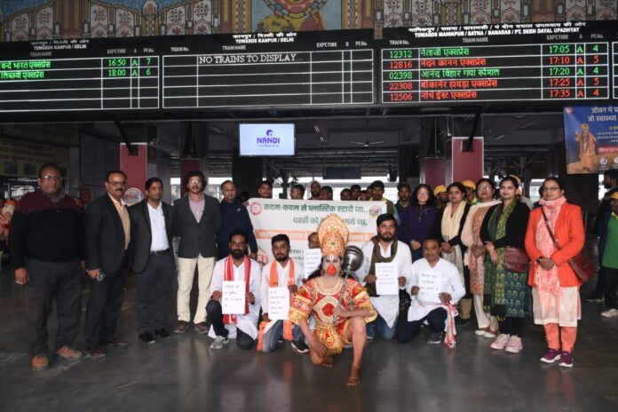 पर्यावरण संरक्षा के प्रति जागरूकता के लिए प्रयागराज जंक्शन पर नुक्कड़ नाटकों का आयोजन किया गया । इस अवसर पर महिला कल्याण संगठन/उत्तर मध्य रेलवे की अध्यक्षा, श्रीमती चेतना जोशी; सचिव, श्रीमती रिचा वर्मा; संयुक्त सचिव, माधुरी; महिला कल्याण समिति/प्रयागराज मण्डल की उपाध्यक्षा, श्रीमती संध्या राय एवं उप सचिव श्री मती सीमा द्विवेदी; मुख्य पर्यावरण एवं रखरखाव प्रबंधक/उत्तर मध्य रेलवे, शिवाजी कदम; वरिष्ठ मण्डल पर्यावरण एवं रखरखाव प्रबंधक, आलोक केशरवानी; एवं स्टेशन निदेशक, वी के द्विवेदी उपस्थित थे ।