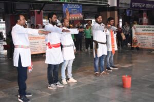 प्रयागराज जंक्शन पर नुक्कड़ नाटक के आयोजन के बाद स्टेशन निदेशक, वी के द्विवेदी ने महिला कल्याण संगठन/उत्तर मध्य रेलवे एवं महिला कल्याण समिति/प्रयागराज मण्डल के पदाधिकारियों को कलर कोडेड यात्री आश्रयों को दिखाकर आश्रयों में उपलब्ध सुविधाओं के विषय में अवगत कराया ।