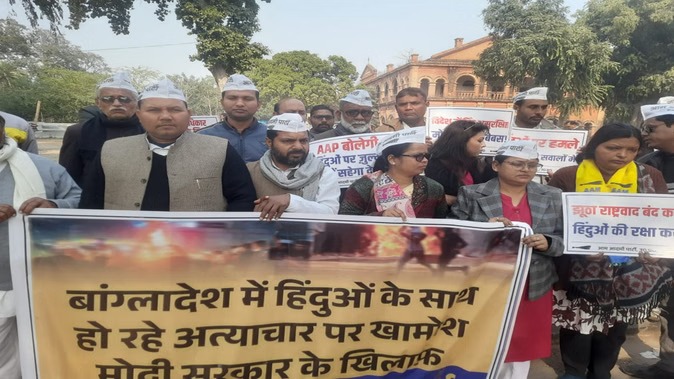 पड़ोसी देश बांग्लादेश में हिंदुओं पर हो रहे हमले, अत्याचार और उत्पीड़न के खिलाफ आम आदमी पार्टी से जुड़े लोगों ने सिविल लाइंस पत्थर गिरजाघर स्थित धरना स्थल पर प्रदर्शन किया। केंद्र सरकार के खिलाफ नारेबाजी की।
