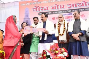 कार्यक्रम में विभिन्न योजनाओं के लाभार्थियों को सम्मानित किया गया। कार्यक्रम की अध्यक्षता पूर्व कैबिनेट मंत्री नरेंद्र कुमार सिंह गौर ने की तथा संचालन विधायक गुरु प्रसाद मौर्य ने किया।