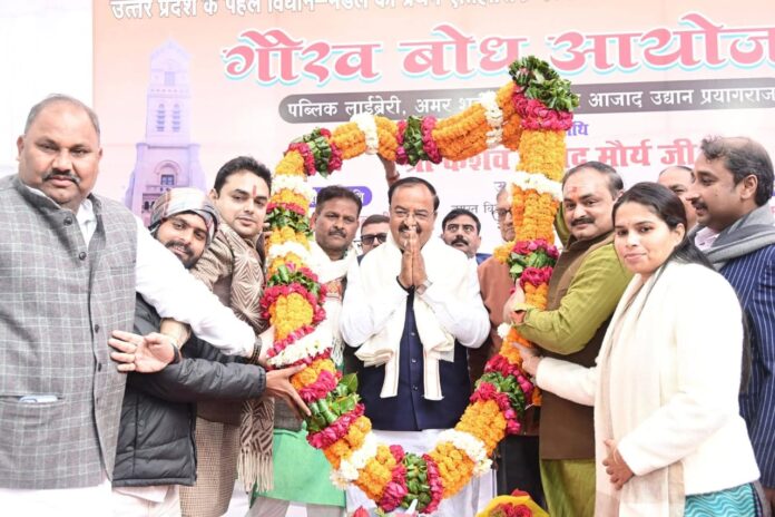 इसके पश्चात उपमुख्यमंत्री प्रयाग गौरव अनुभूति के तत्वावधान में पब्लिक लाइब्रेरी, अमर शहीद चंद्रशेखर आजाद उद्यान, प्रयागराज में आयोजित उत्तर प्रदेश के पहले विधानमंडल की प्रथम ऐतिहासिक बैठक के 139वें वर्ष के पूर्व दिवस पर आयोजित प्रयाग गौरव बोध कार्यक्रम में मुख्य अतिथि के रूप में सम्मिलित हुए।