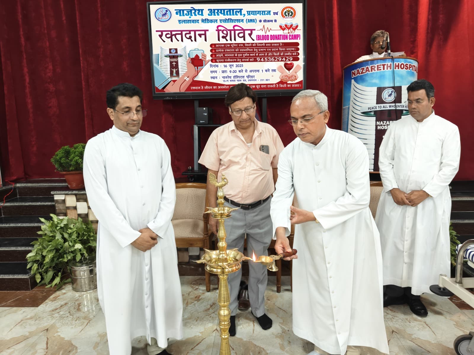 प्रयागराज, 16 जून 2025: नाज़रेथ अस्पताल, प्रयागराज ने आज इलाहाबाद मेडिकल एसोसिएशन (AMA) के सहयोग से एक दिवसीय विशाल रक्तदान शिविर का सफल आयोजन किया। यह शिविर अस्पताल परिसर में सुबह 9:00 बजे से दोपहर 2:00 बजे तक आयोजित किया गया।