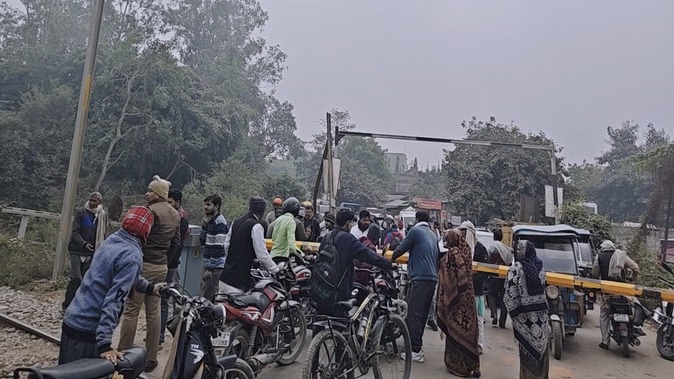 जान जोखिम में डालकर पटरी पार करते दिखे लोग